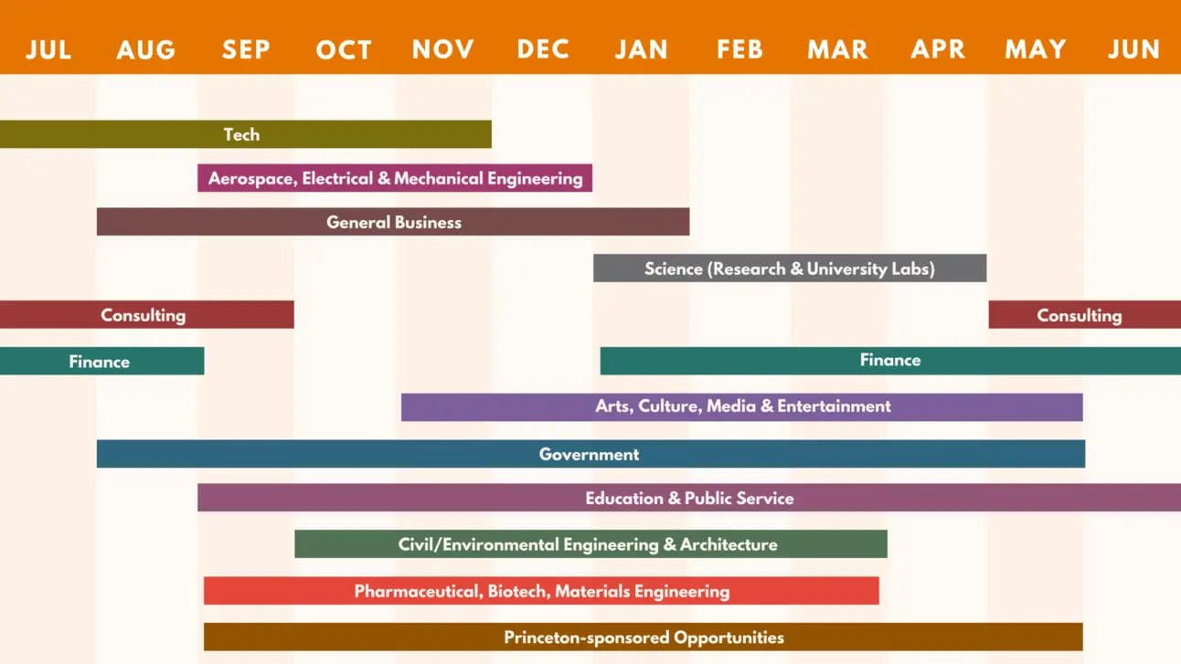 Here’s a recruiting timeline per industry to prepare for the next internship cycle.